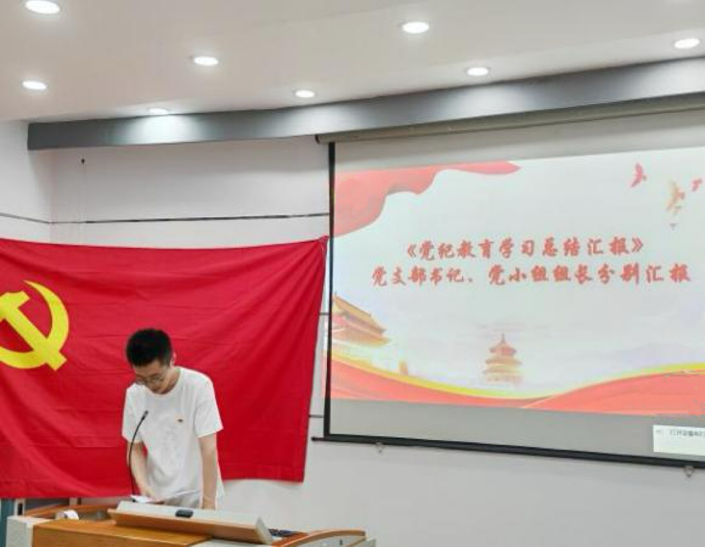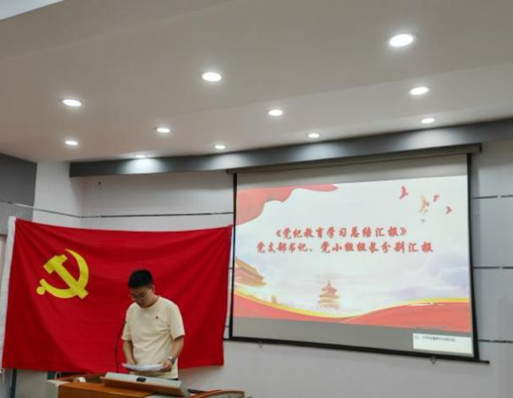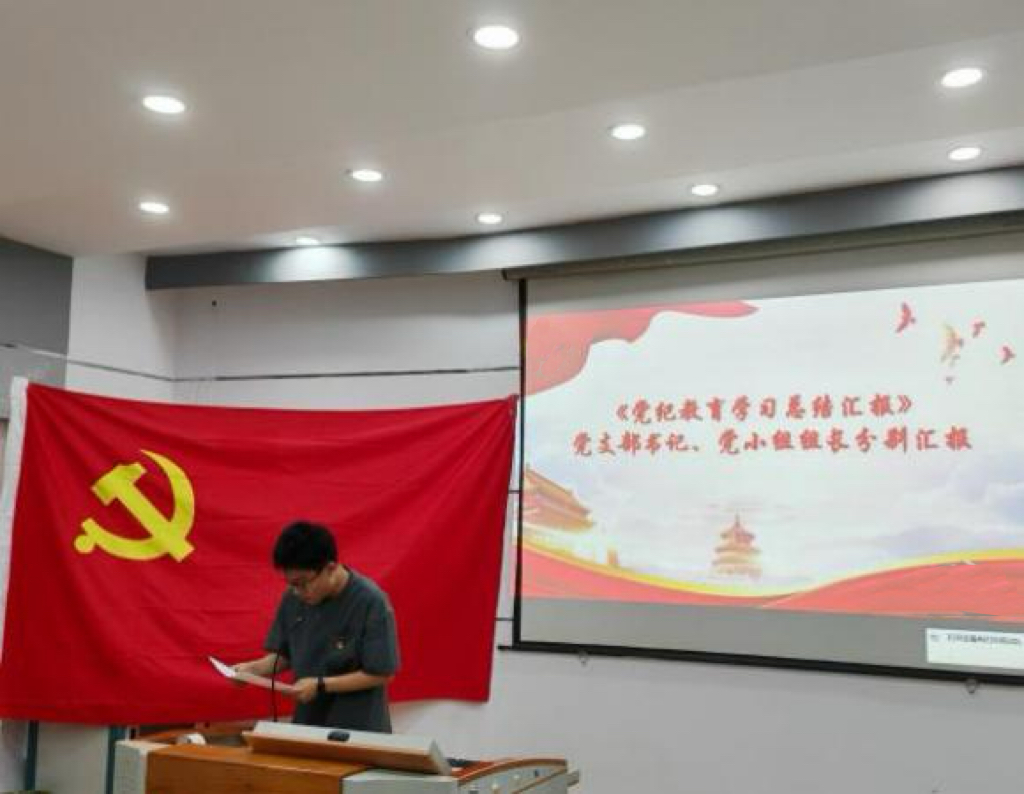 张建鹏老师传达了中共中央办公厅《关于在全党开展党纪学习教育的通知》精神,并结合《中国共产党纪律处分条例》以及实际案例进行了深入讲解。他强调,支部全体党员要坚决贯彻全面从严治党的战略部署,深入理解和掌握条例要点,深刻认识开展党纪学习教育的重要性和目标要求,自觉遵守党的纪律,做到言行一致,不越雷池一步,在思想上、政治上和行动上同以习近平同志为核心的党中央保持高度一致,自觉做党纪国法的坚定践行者。