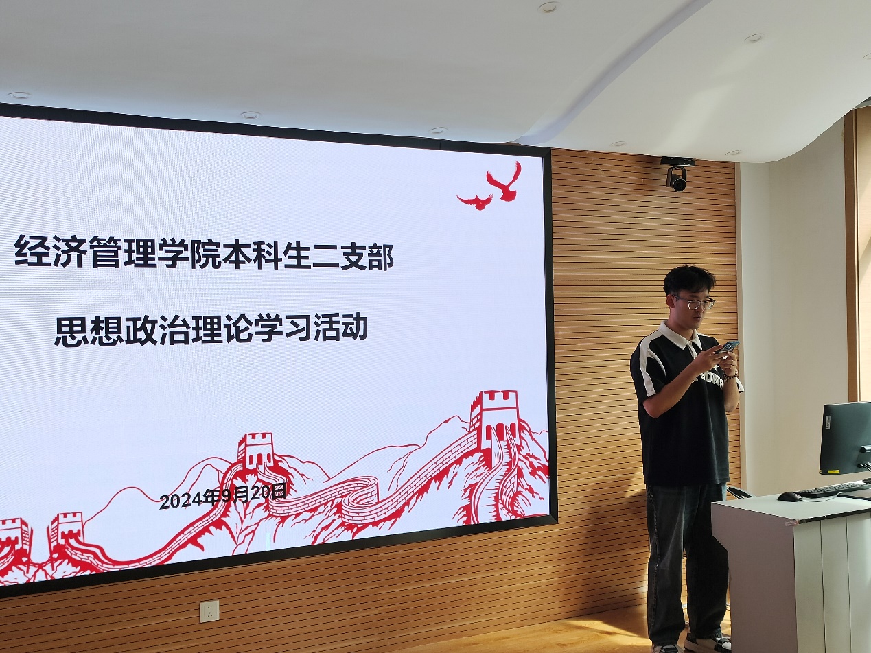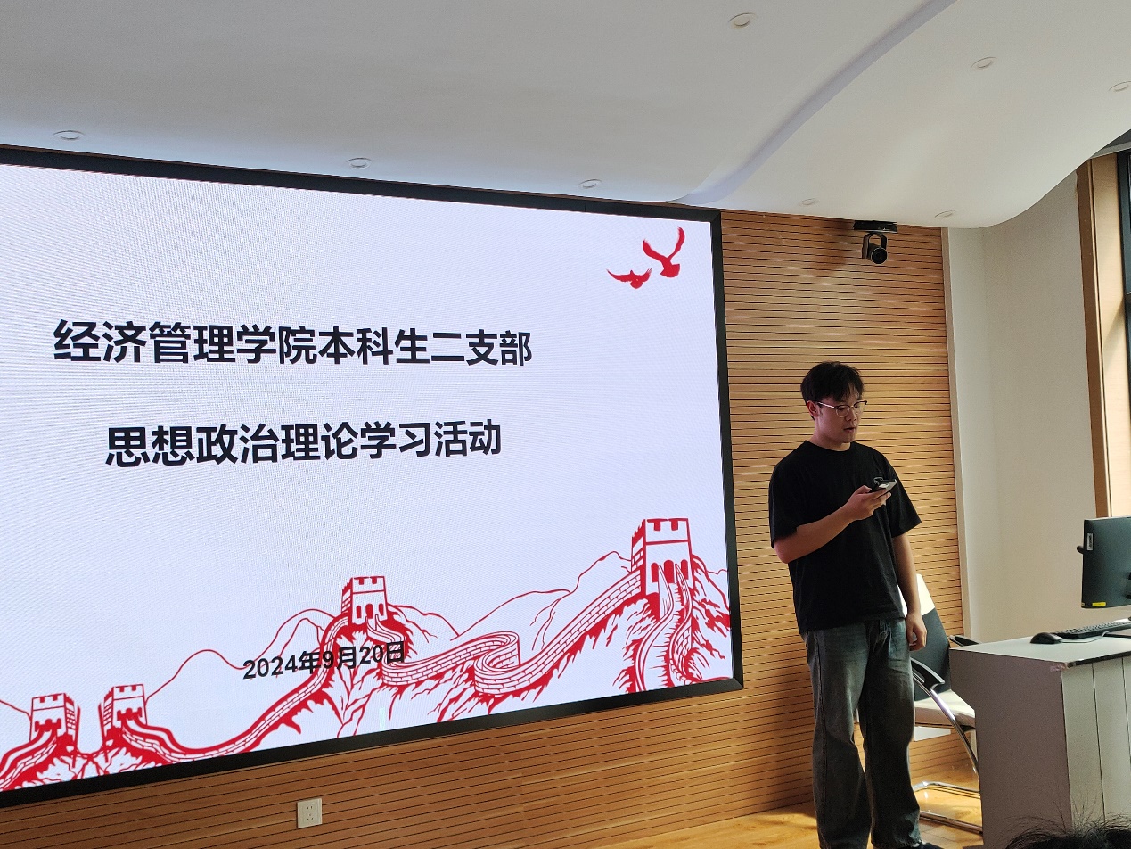 为了进一步学习贯彻习近平新时代中国特色社会主义思想,进一步深入领会党的二十届三中全会精神,9月20日下午,德赢AC米兰官网本科生二支部在知行楼(经管楼)208教室开展了思想政治理论学习活动。