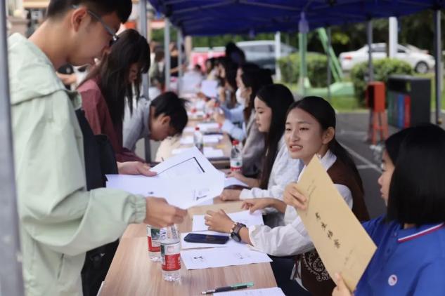 报到现场井然有序,报到、学籍注册、发放入学物品、入住宿舍等工作有条不紊的进行。学生志愿者尽职尽责,热情洋溢的服务,让新同学及家长在报到第一天就感受到了德赢AC米兰官网的热情与温暖。