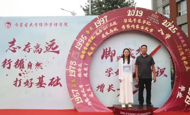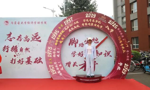 报到现场的打卡板上,习近平总书记对内大学子的殷切嘱托在阳光的照耀下熠熠生辉,字字句句都传递着温暖与力量;“日月争辉”时钟展板,是新生们的热门打卡点,新生及家长纷纷在此处留下进入大学的第一张照片,定格每一张青春洋溢的面孔、记录每一个美好灿烂的微笑。