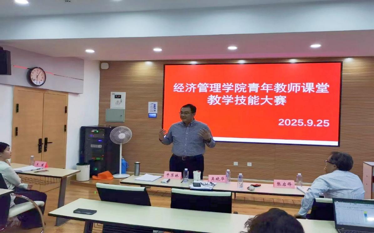 比赛结束后,张启锋评委对参赛教师的表现进行了点评。他强调青年教师要想方设法提高课堂教学效果,要善于将生活中的实例引入课堂,并持续更新案例库,以贴近学生实际的方式激发其学习兴趣。他鼓励青年教师在授课过程中既要立足学科前沿,也要注重基础知识的传授,做到深入浅出、富有感染力。